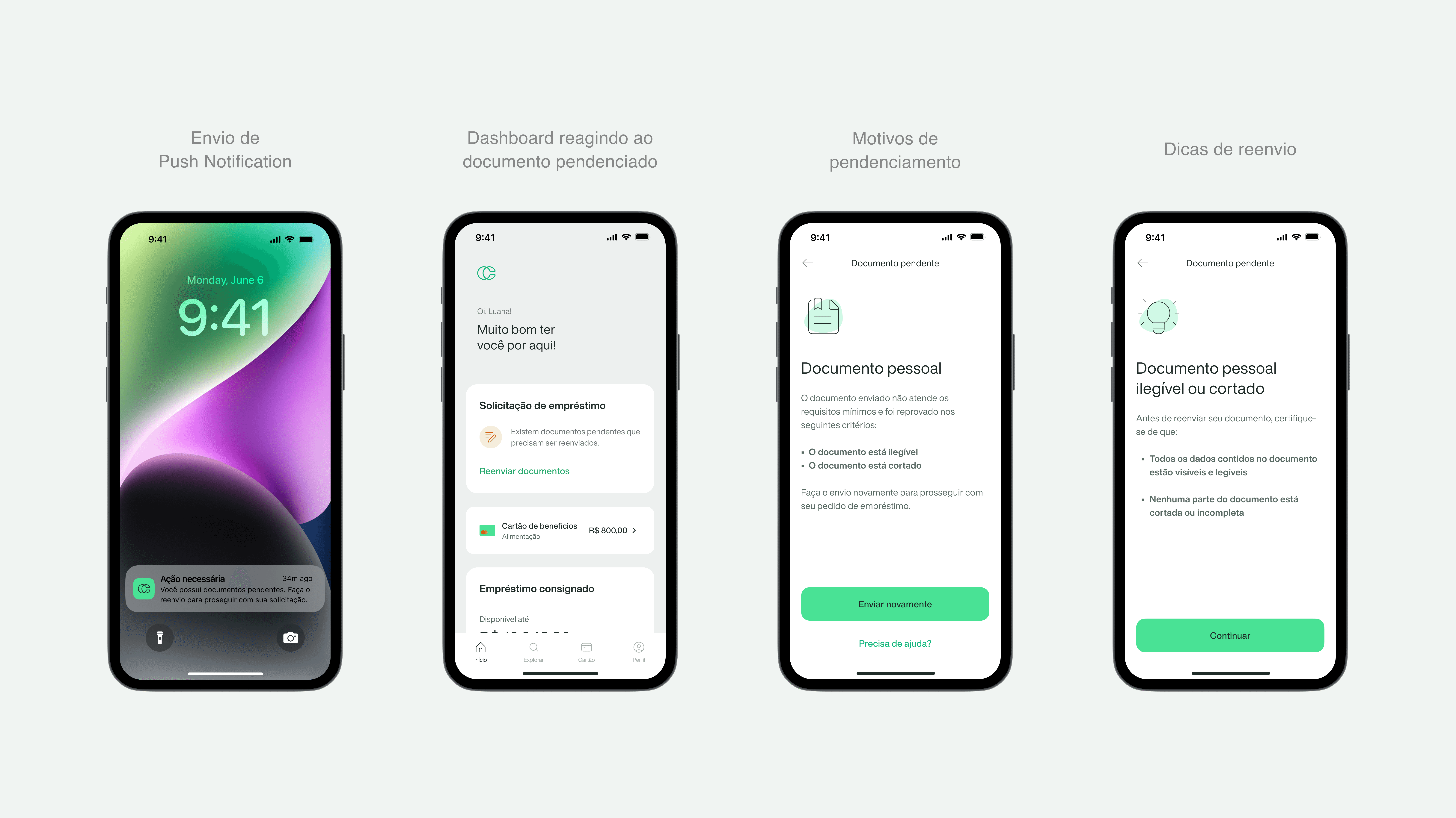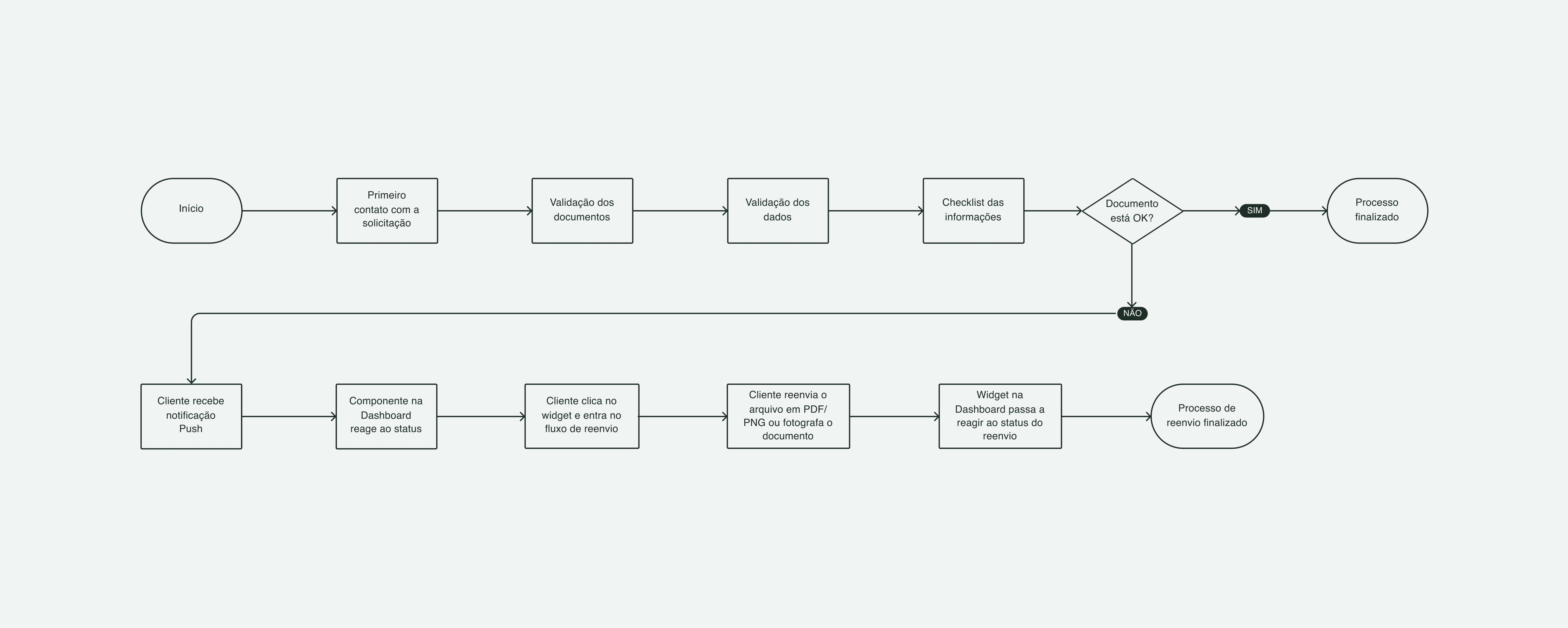 A experiência passou a começar antes do usuário agir. Ao identificar uma pendência, o sistema envia push e atualiza dinamicamente o widget da dashboard, transformando-o no principal ponto de acompanhamento da jornada.