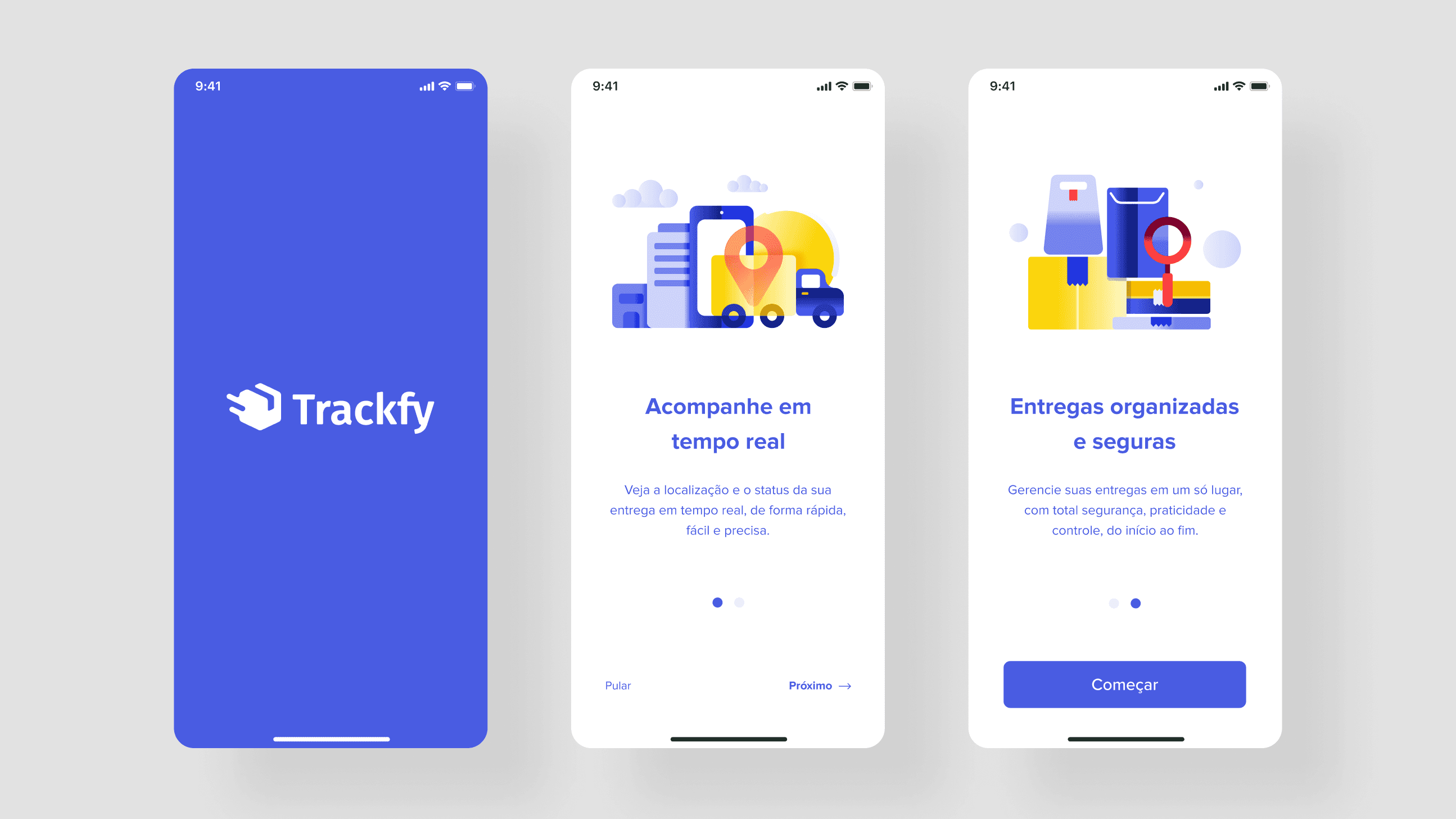 Comecei explorando conceitos visuais relacionados a movimento, rastreamento e progressão, buscando traduzir visualmente a ideia de acompanhar uma encomenda ao longo de sua jornada. O desafio era equilibrar clareza funcional com uma linguagem visual leve e acessível, evitando complexidade desnecessária.